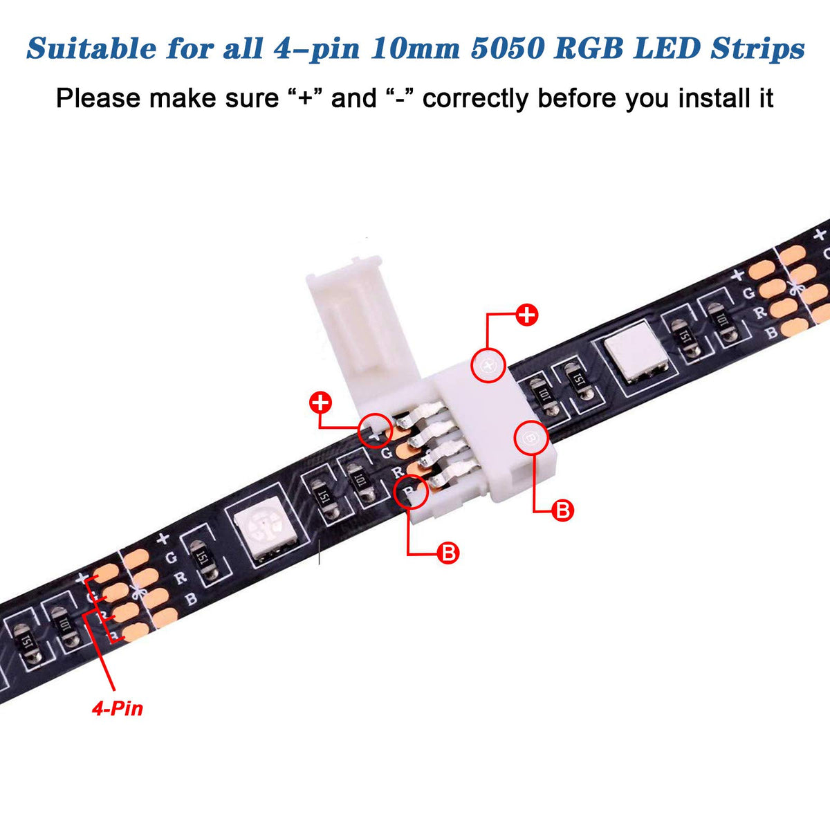 Q: What types of LED strips are compatible with these connectors?A: These connectors are compatible with most non-waterproof 4 pin SMD 5050 RGB LED strips, specifically those that are 10 mm in width and operate on 5V, 12V, or 24V low voltage power.
