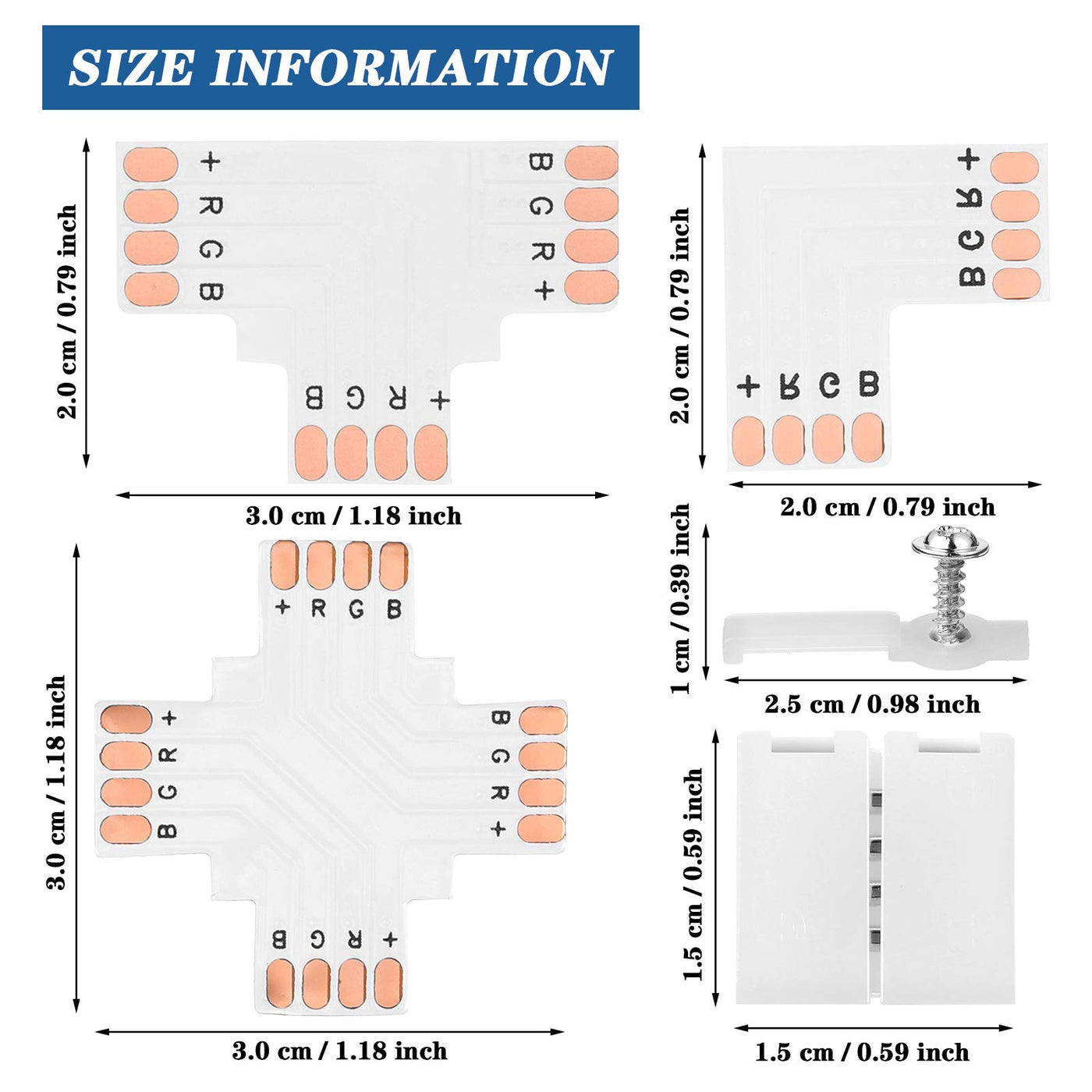 Features: Normal Work Details: The Led Adapter Connectors Are Easy To Use And Install, Can Connect To Most 5V, 12V, 24V Low Voltage Power. Also, They Can Complete The Diversification When Installing The Light Bar, Extending The Connection At Multiple Angles To Solve The Problem Of The Position Limitation Of The Light Pole. Wide Usages: The Led Strip Connector Kit Can Be Applied For Bare Board Light Bars, You Can Cut The Light Connectors Length According To Your Own Needs, Which Are Convenient To Connect Quickly And Safely. At The Same Time, The Maintenance Is Easy Enough That The Broken Light Bar Can Be Quickly Replaced. Quality Material: The Led Solderless Connector Is Made Of Quality Pbt, Which Is Safe And Durable, And It Has The Properties Of Heat-Resistant And Anti-Burning. In Addition, The Connectors Are Designed With Waterproof Strips That Have A Silicone Coating For Long Time Use. How To Use: First You Should Open The Wire Clip, Then Insert The Light Bar Into The Connector And Clamp The Cover (No Soldering Required), Make Sure The Side Of The Strip Aligns With The + Symbol, Finally Close The Buckle Clamp And Pull The Wire Gently, And Then You Can Use It. Specifications: Color: As Shown In The Picture Material: Pbt, Metal Size: As Shown In The Picture Package Includes: 40 X Gapless Connectors 10 X L-Shape Pcb Boards 20 X T-Shape Pcb Boards 5 X X-Shape Pcb Boards 20 X Screw Fixing Clips Notes: Please Cut The Led Strip According To The Cuttable Mark When You Want To Change The Shape Of Pcb Board. Please Allow A Little Error On The Size Due To Manual Measurement. The Color Might Exist Slightly Difference Due To Different Displays.