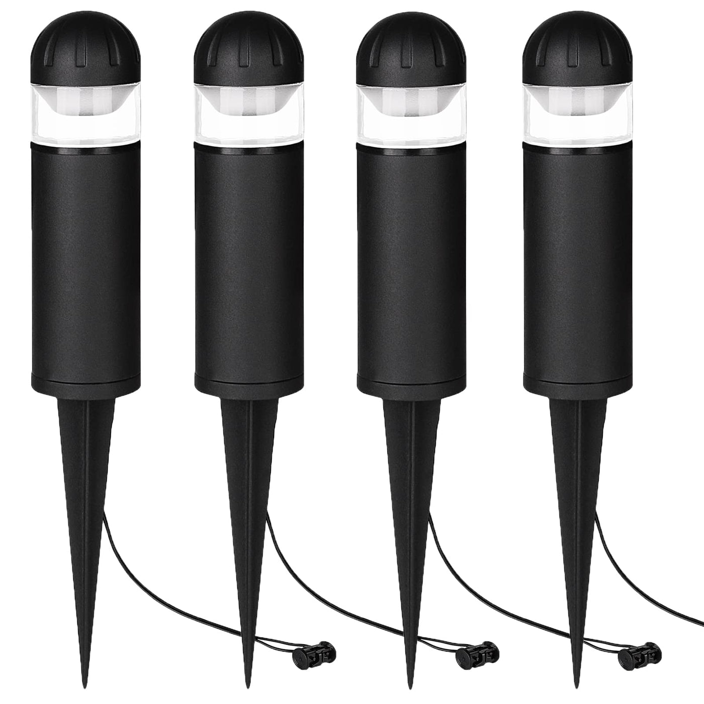 MULANDI 2W LED Landscape Bollard Pathway Light, Waterproof Black Aluminum, 3000K Warm White, Low Voltage, Pack of 4