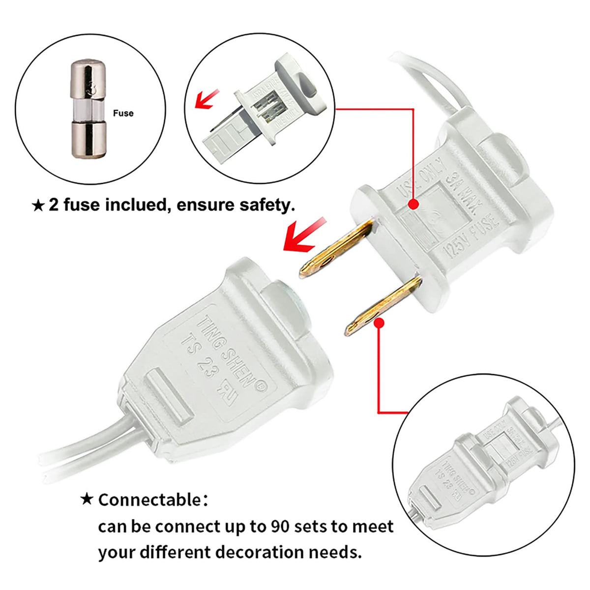 Q: Are extra bulbs and fuses included with the string lights?A: Yes, the package includes 2 extra LED bulbs and 1 extra fuse to ensure you have replacements on hand for maintenance.