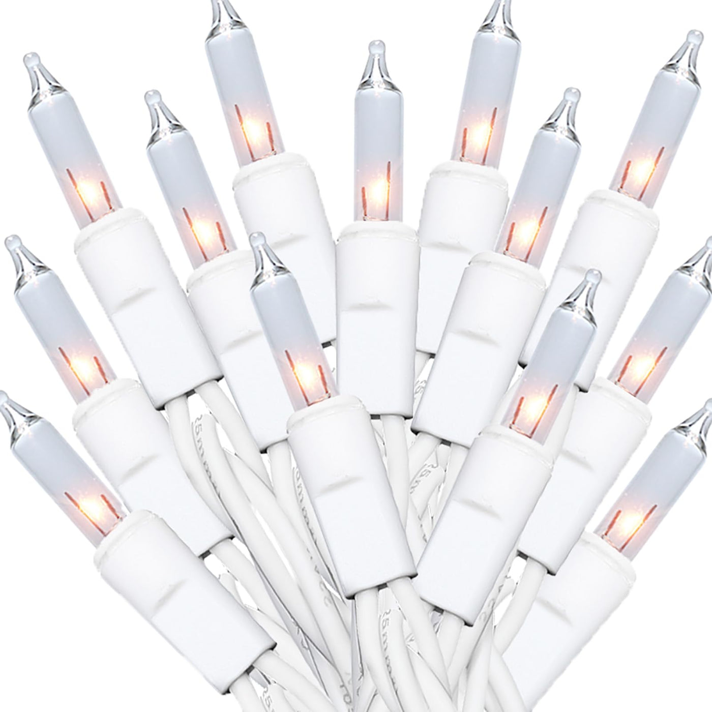 8.5Ft 35 Count White Wire Clear Christmas Lights Specifications: - Light Color: Warm White - Light Display: Steady On - Bulb Type: Incandescent - Removable Bulbs: Yes - Connectable: Yes - Ingress Protection Rating: Ip44 - Usage: Indoor / Outdoor Dimensions: - Total Length: 10.25 Feet - Lights Length: 8.5 Feet - Lead: 1.5 Feet - Spacing: 0.25 Feet - Tail: 0.25 Feet Actual Power: - 14.4 Watts - 216 Watts End-To-End Maximum - 15 Max Sets Connected What'S In The Box: - 1 X White Wire 35 Count Warm White Christmas Mini String Lights - 1 X User Manual / Product Description