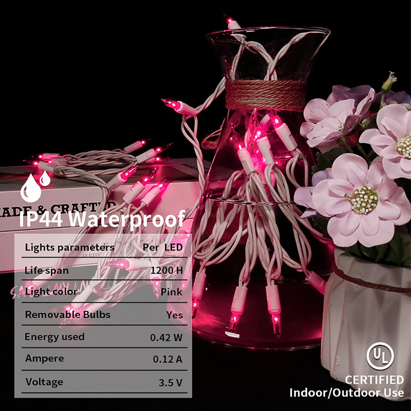 Multi-Sparking Pink Christmas Lights 35 Count - Incandescent Pink Mini String Lights For Indoor/Outdoor Christmas Valentines Day