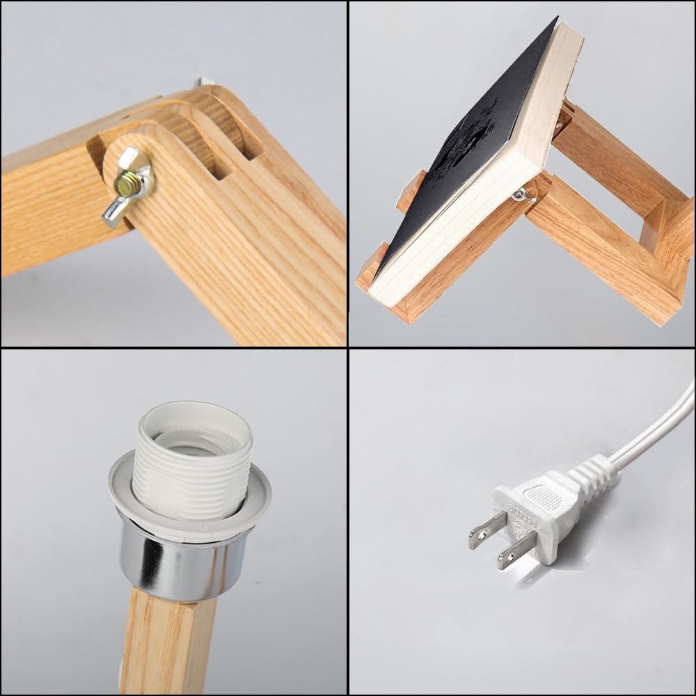 Specifications: Materials: Wood and fabric Color: White lampshade, solid wood bracket Bulb Base: E26 Including bulbs or not: Not including bulb Voltage: 110-220V Switch: Button switch on the cord Style: Simple and modern, cute robot shape Rooms: Suitable for living room, office, bedroom, restaurant, kitchen, modern, traditional and industrial interiors as well as shops, bars and restaurants.
