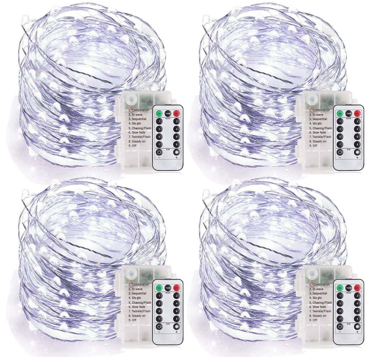 Package Includes 4 x 100 Led string lights 4 x remotes 1 x User Manual