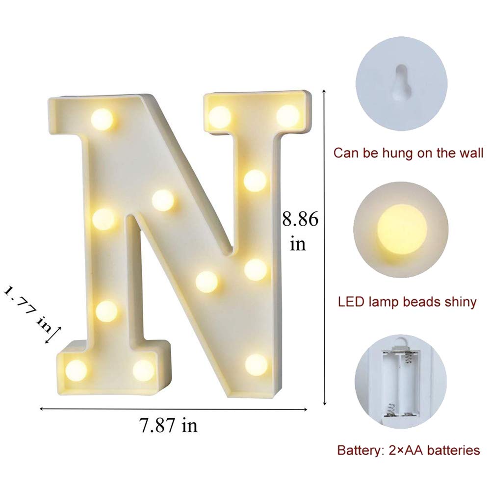 Decorate your life and home with the MJMIX Lights Light up your favorite words for special occasion, event, or home decorating. Such as home, birthday party, outdoor, bars, cafes, children's room decorated,etc. Create a romantic and warm atmosphere, gift giving and much more. When switched on the LED lights give a bright eye catching warm white glow and adds a fabulous ambiance to any room. The beauty of these is that there are no cables and each takes 2 x AA batteries (not included) and lasts long lifespan to the LED lights. They hang or stand and it's easy to get to the switch to turn off and prolong battery life when not needed. Can be displayed stand alone or combined with other pieces to create an eclectic lighting installation. Specifications: Type: LED Decorative Lights Material: ABS, PP Color: Warm White Size: 24 x 22 x 5.5cm (9.5'' x 8.7'' x 2.2'') Power Source: 2 x AA battery (Not Included) AFTER-SALES SERVICE - If you meet any problem, please feel free to Contact us via Amazon message box for free replacement or full refund.