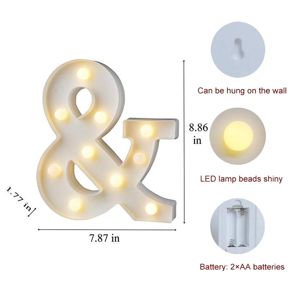 Decorate your life and home with the MJMIX Lights Light up your favorite words for special occasion, event, or home decorating. Such as home, birthday party, outdoor, bars, cafes, children's room decorated,etc. Create a romantic and warm atmosphere, gift giving and much more. When switched on the LED lights give a bright eye catching warm white glow and adds a fabulous ambiance to any room. The beauty of these is that there are no cables and each takes 2 x AA batteries (not included) and lasts long lifespan to the LED lights. They hang or stand and it's easy to get to the switch to turn off and prolong battery life when not needed. Can be displayed stand alone or combined with other pieces to create an eclectic lighting installation. Specifications: Type: LED Decorative Lights Material: ABS, PP Color: Warm White Size: 24 x 22 x 5.5cm (9.5'' x 8.7'' x 2.2'') Power Source: 2 x AA battery (Not Included) AFTER-SALES SERVICE - If you meet any problem, please feel free to Contact us via Amazon message box for free replacement or full refund.