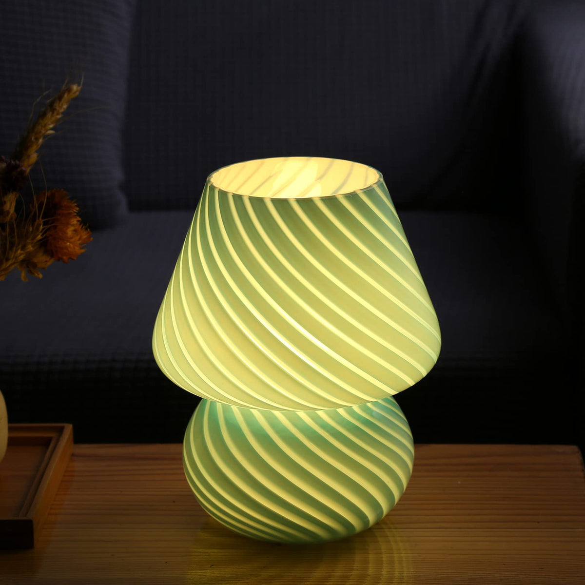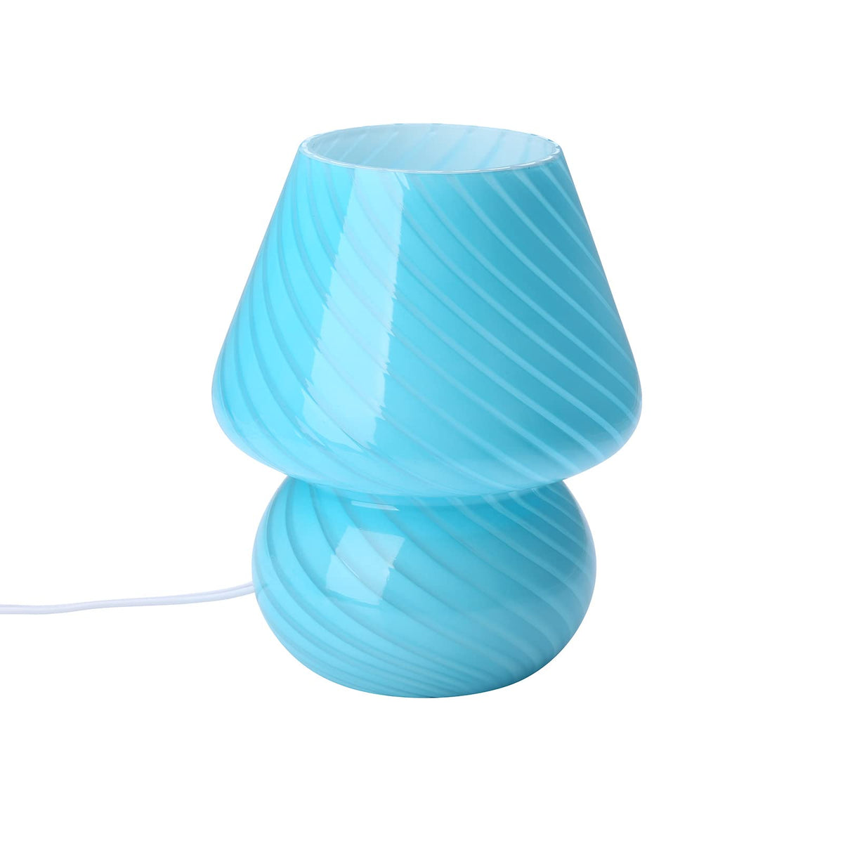Mushroom Lamp,Glass Arctic Blue Mushroom Bedside Table Lamps Vintage Translucent Murano Style Striped Small Nightstand Desklamp
