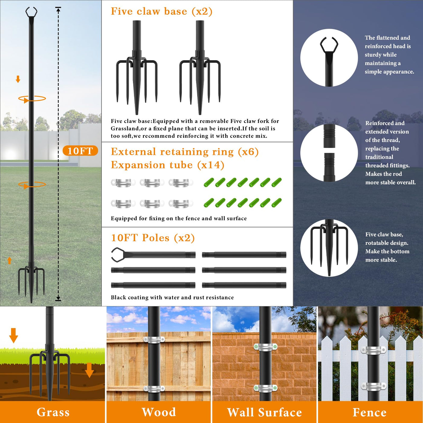 - **Easy Installation**: Designed for user convenience, these light poles come in sectional designs that are simple to assemble. Connect multiple sections in a threaded direction and install the fork/fence brackets in the correct order for quick setup.