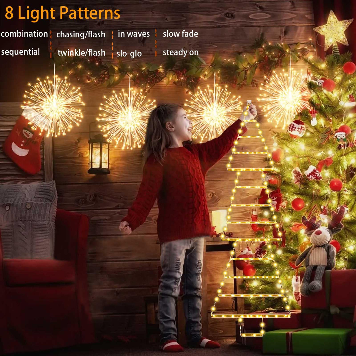 Muyun Led Christmas Light Christmas Tree Ladder Lights,165 Led Super Bright Outdoor Christmas Decorations Lights For Home,Wall,Window,Xmas Tree Decor (4.3Ft/130Cm,Warm White)