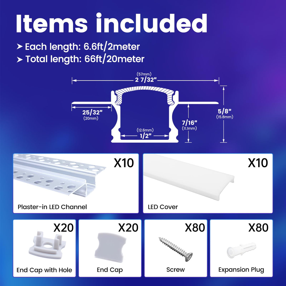 Q: What are the ideal applications for the Muzata plaster-in LED channels?A: These plaster-in LED channels are perfect for indoor lighting decoration, including accent lighting, general ambient lighting, and creating visually appealing ceiling and wall lighting in spaces like living rooms, kitchens, and commercial areas.