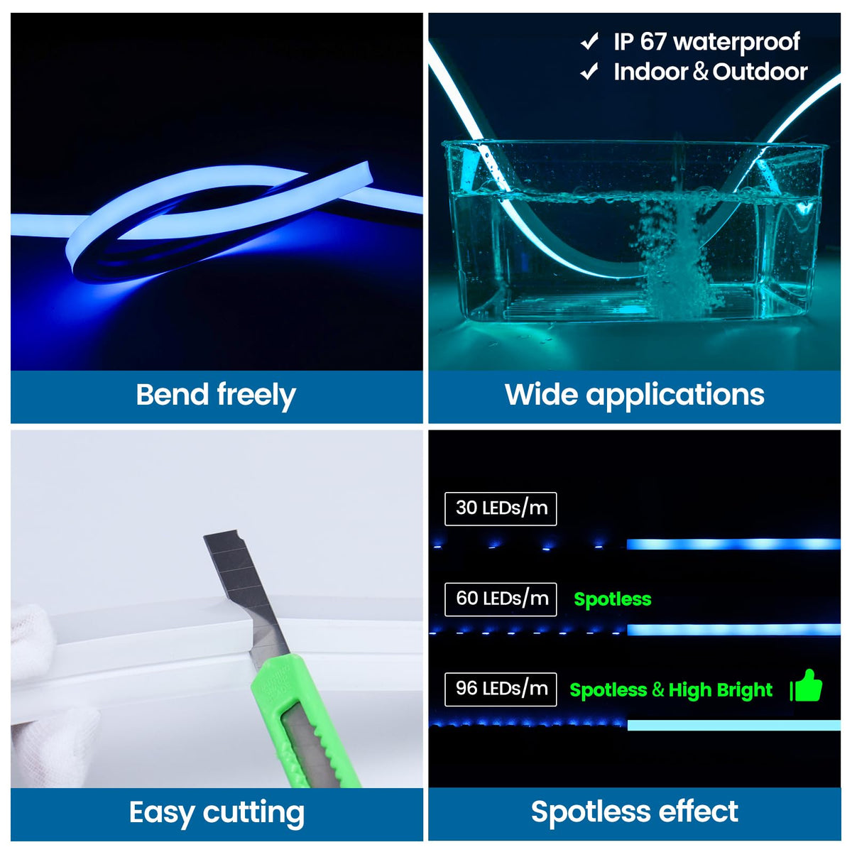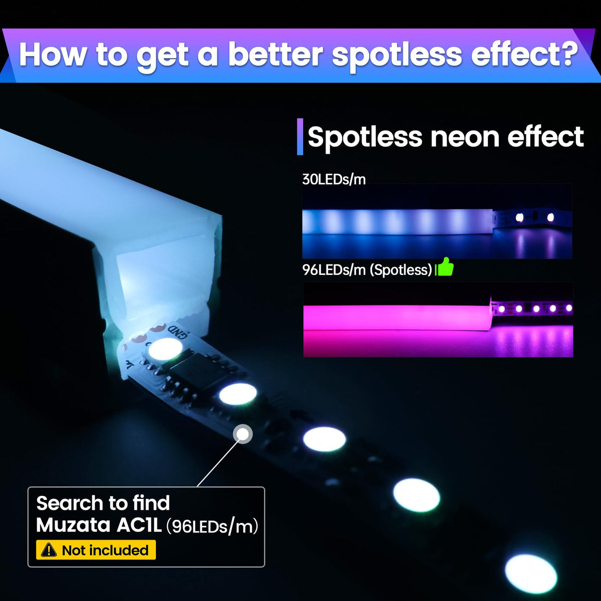Muzata 2Pack 16.5Ft/5M Silicone Led Channel Ip67 Waterproof And Dustproof Flexible Bendable Spotless Diffuser Channel Fit Neon L