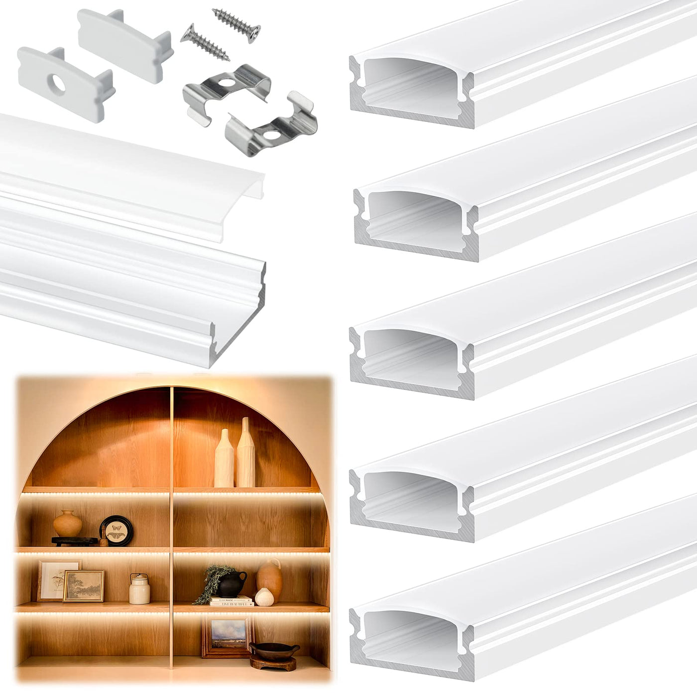 Muzata 6Pack 3.3Ft/1M Led Channel White Aluminum U Shape Led Strip Diffuser Channel With Milky White Cover Easy Installation U1Sw Hw 1M