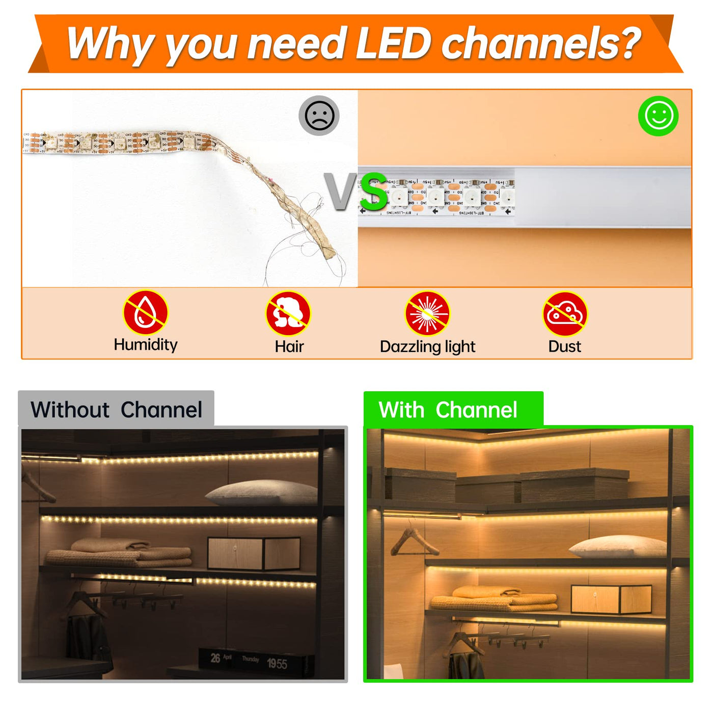 Q: What is the weight capacity of the Muzata LED channel system?A: While the weight capacity may vary depending on the installation method, the Muzata aluminum channel is designed to securely hold standard LED strip lights without sagging.