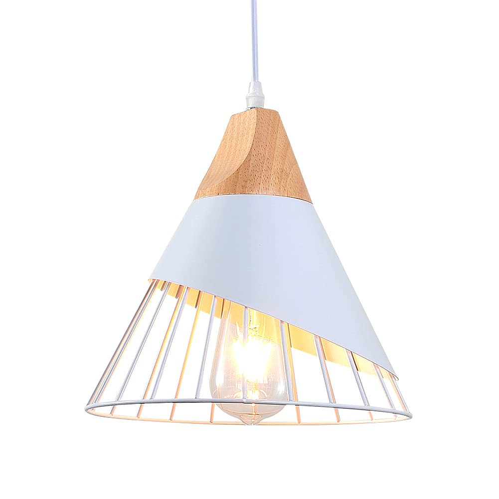 Mxsaoud White Pendant Lights For Kitchen Island,Adjustable Wood Hanging Light Fixture,Industrial Pendant Lighting For Dining Roo