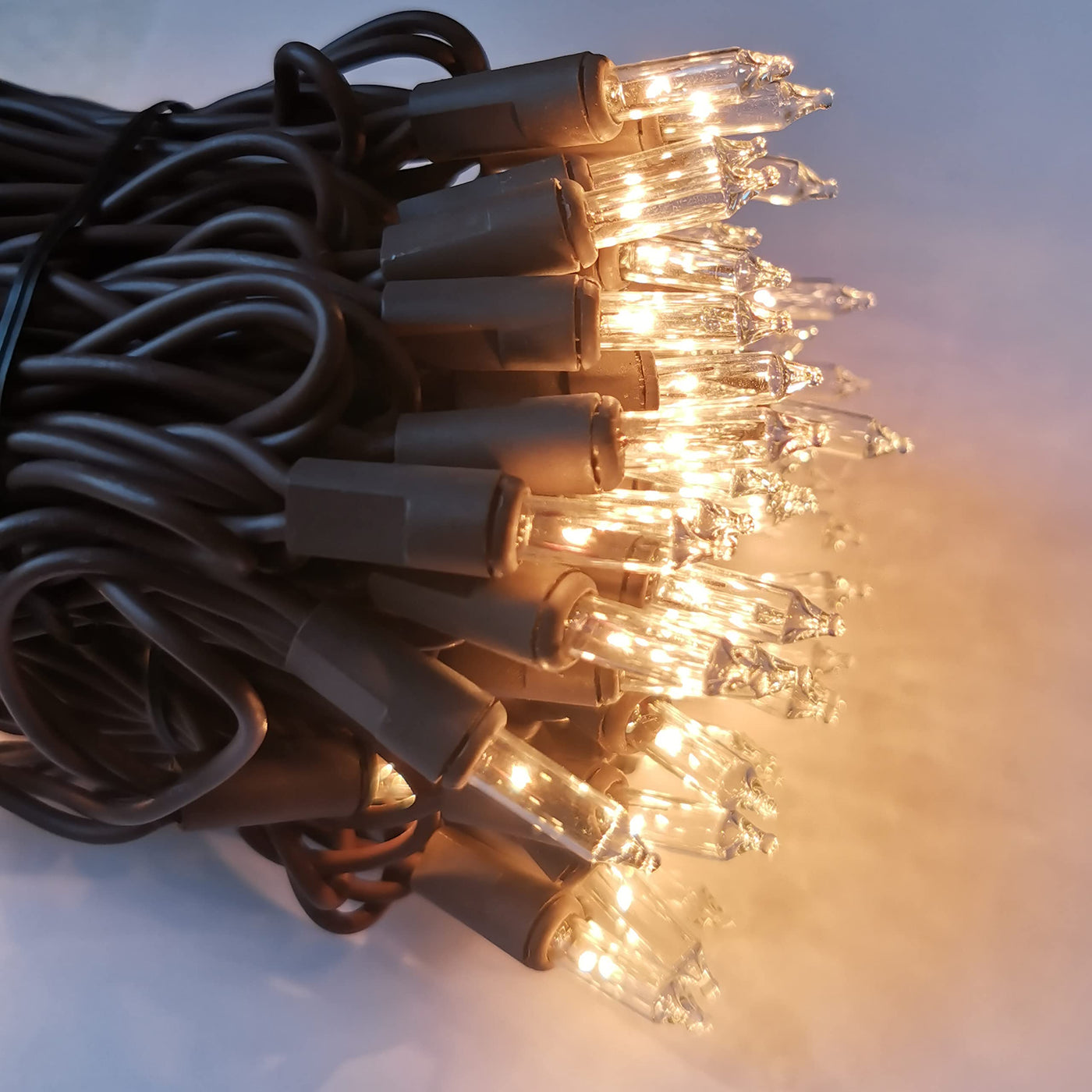 MXTCLM 100 Clear Mini Brown Wire Christmas Lights 23ft Incandescent Waterproof UL Certified Fairy String Lights for Outdoor Indo