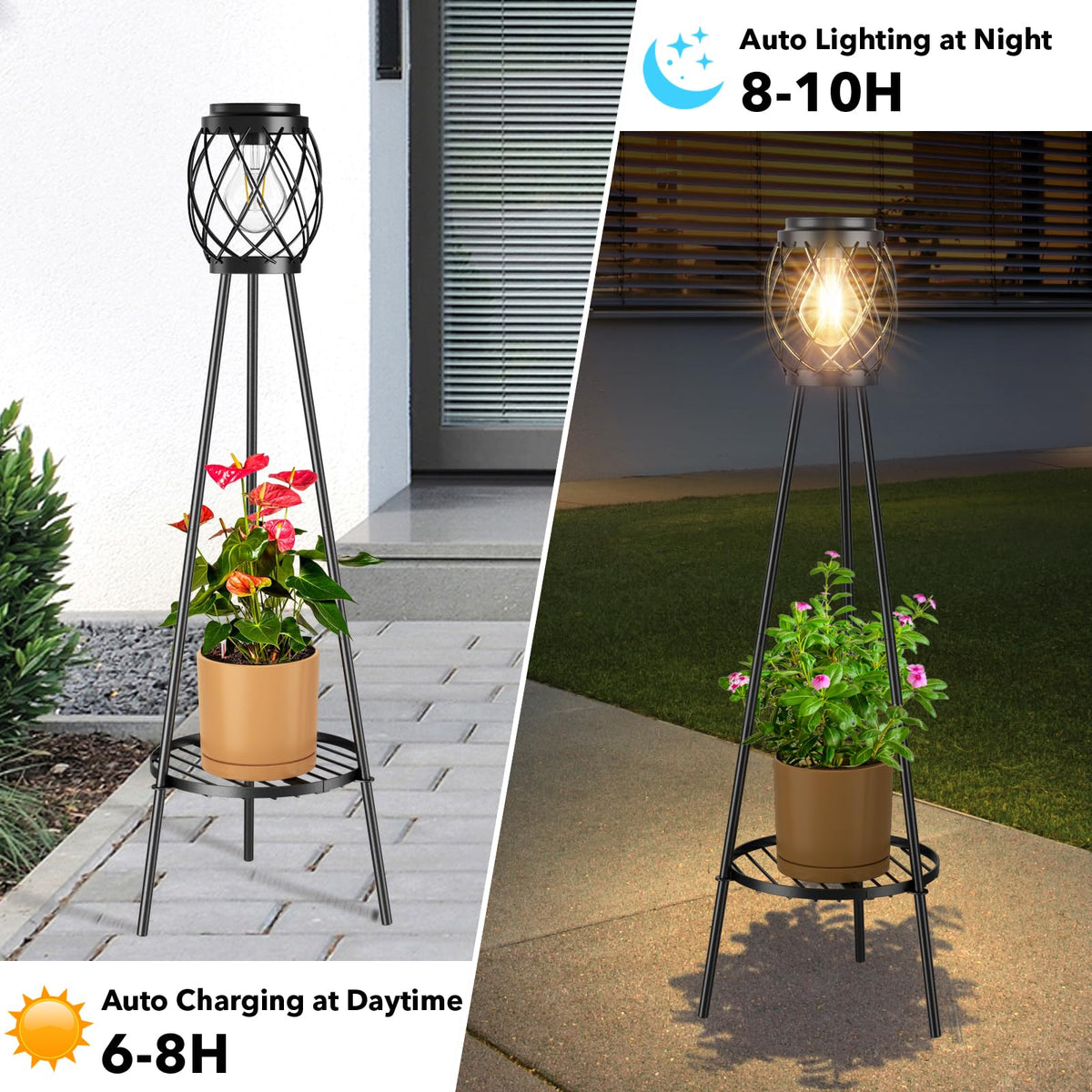 Mxwcy 2 Pack Solar Lights Outdoor With Led Edison Bulbs, Vintage Style Solar Floor Lamp With Plant Stands, Weatherproof Garden L