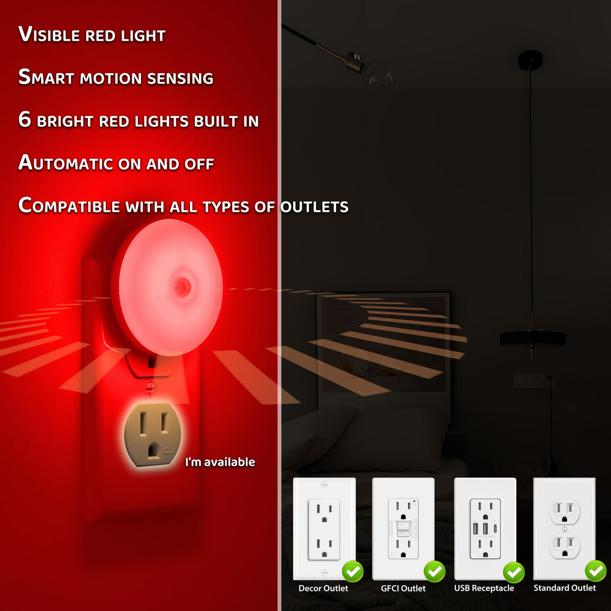 Mycozylite Motion Sensor Led Night Light, Red, Plug-In Nightlight For Home, Smart Movement Sensor, Led Night Lights Plug Into Wa