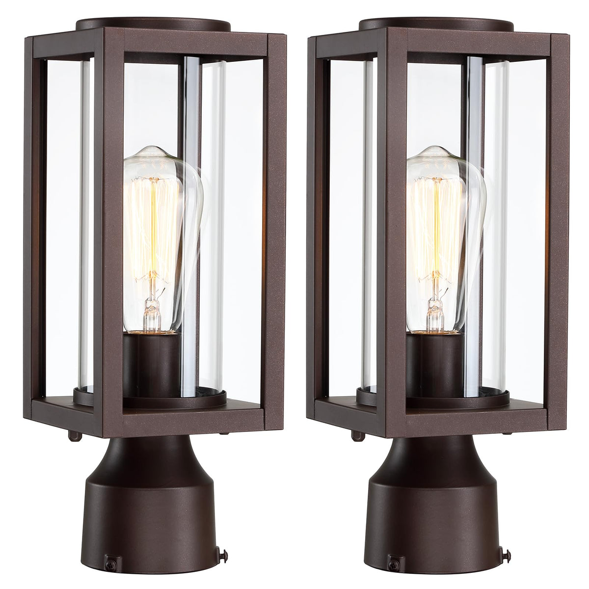 Myhxq Outdoor Post Lights Lamp Post Light Fixture 2 Pack, Modern Brown Exterior Post Lantern Fixture With Tempered Glass, Anti-R