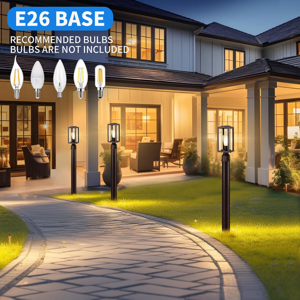 Q: What type of bulbs can I use with the MYHXQ Outdoor Post Lights?A: The MYHXQ Outdoor Post Lights are compatible with all types of E26 base bulbs, with a maximum wattage of 100W. This allows you to choose the perfect bulb that meets your lighting needs and style preferences.