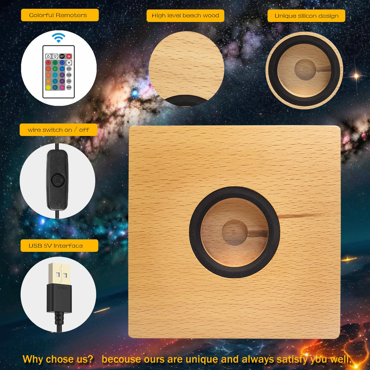 Myouke 4 Inch Square Led Light Base Display Base Lighted Display Stand,16 Colored Usb Light Table Light Base Wood Crystal Light
