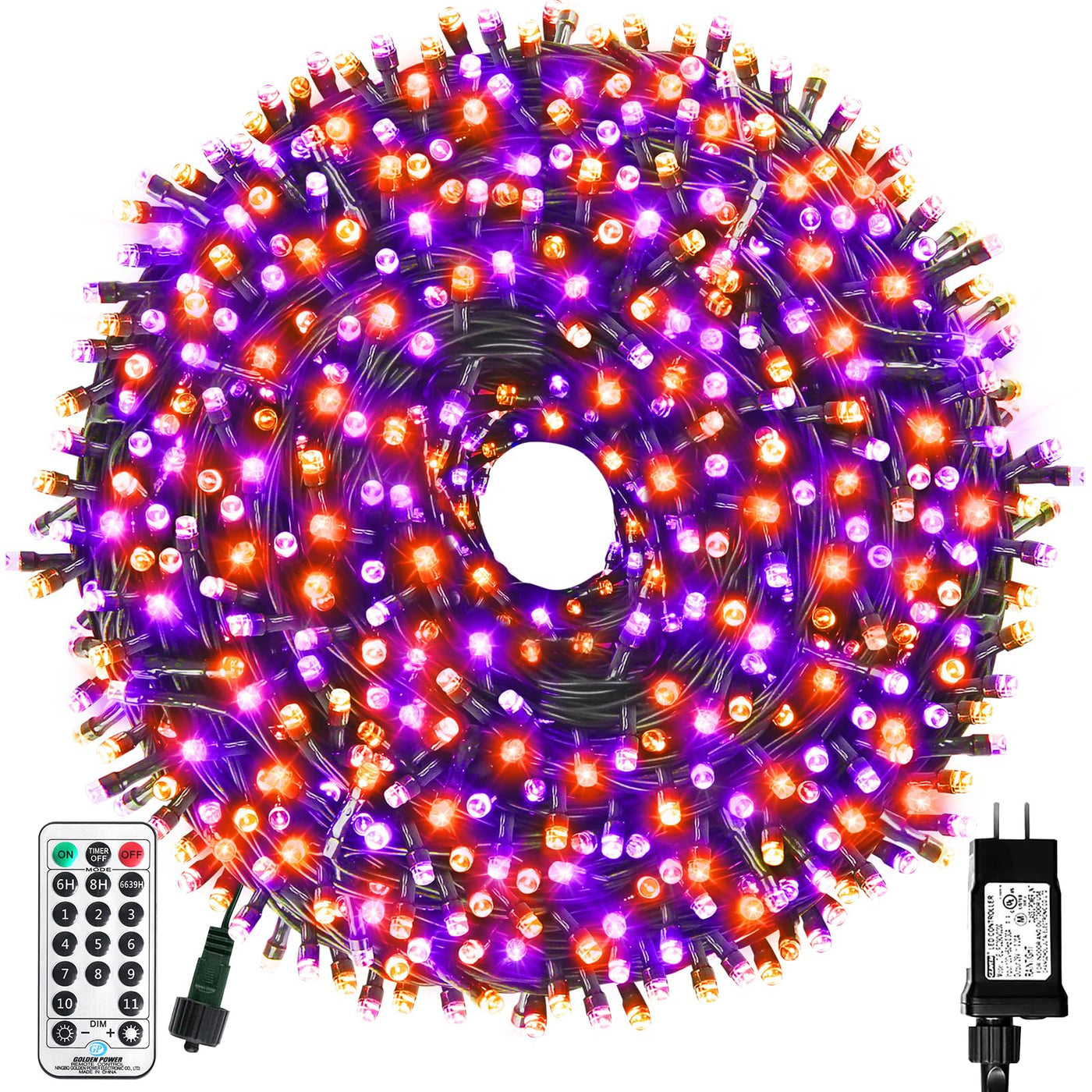 Specification: Led Quantity: 300 Leds Color: Orange & Purple Wire Color: Green Total Length : 108Ft Wire Material : Copper Wire+Sturdy Thick Pvc Input Voltage : 110V Ac Output Voltage: 29V Long Lifespan : Over 20,000 Hours Full Ul Certificated 100% Ul Listed For Whole Set Including Led Beads, Copper Core Insulated Wire And Low Power Consumption Plug Are Ul Approved. Not Get Hot Even After Long Hour Use. Very Safe To Use. 11 Working Modes & Memory Function 11 Lighting Modes To Creat Lots Of Fun: Orange Steady On, Purple Steady On, Orange Twinkle/Flash, Purple Twinkle/Flash, Combination Of Orange & Purple, In Waves, Sequential, Slogs ,Chasing/Flash, Slow Fade, Twinkle/Flash Etc. Memory Function & Timer & 4 Level Dimmer This Chrismtas String Light Is Designed To Remember Your Last Setting, No Need Reset Every Time. You Can Set The Timer 6 Hrs On/18 Off, Also Can Adjust The Brightness From 100%, 75%, 50%,25%? Ip65 Waterproof & 2 Colors In 1 Led String Lights Are Waterproof. They Can Stand All Kind Of Weather, Including Rain And Snow. However,We Don'T Recommend Full Submerge In Water Or Other Liquid. Purple & Orange 2 Colors In 1 Set, Which Support 3 Colors Modes: Orange Only, Purple Only, Mixed. End To End Plug, Support Connect Up To 3 Strands Each Christmas Tree Light Comes With And End Plug, Which Makes You Can Connect Them Together. Please Notice That Max 3 Sets Can Be Connected Together. Length Of Each String Lights Is 108 Feet Extra Wire From Plug To The First Led, So The Max Expandable Length Is 324 Feet, Total 900 Leds To Cover Larager Area.