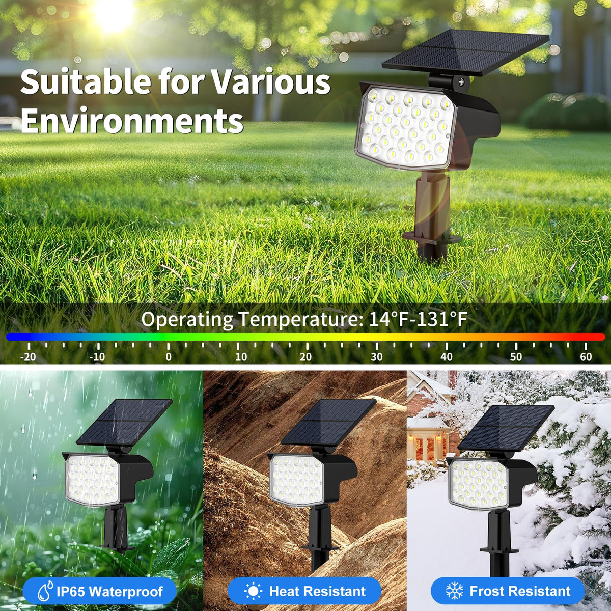 Q: Are the NACINIC Solar Spot Lights waterproof and weather-resistant?A: Yes, the NACINIC Solar Spot Lights are designed with an IP65 protection level, making them waterproof and durable for outdoor use. They can withstand various weather conditions, with a working temperature range of 14℉ to 131℉.