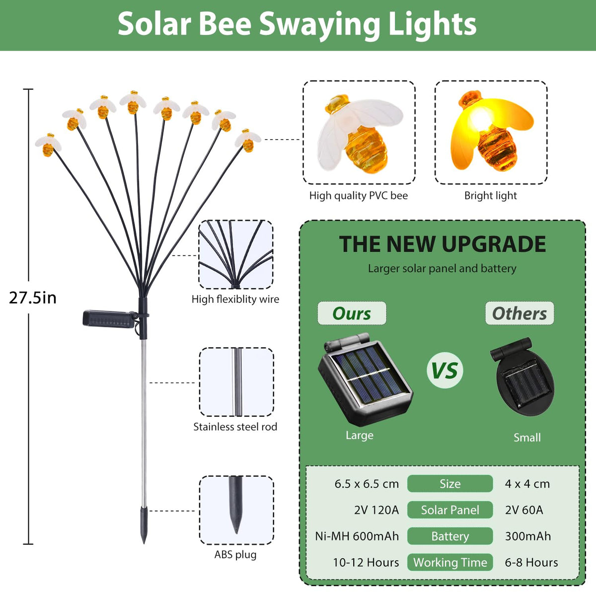 Nacome Solar Garden Lights For Outside - Landscape Decor,Yard Patio Decoration, Waterproof Swaying Bumble Bee(2Pack), Mom Gifts