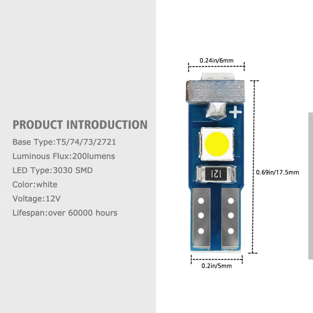 Versatile Compatibility: Designed to fit a wide range of T5 wedge base sizes, this bulb is perfect for automotive, home, or office use, making it a versatile choice for all your lighting needs.