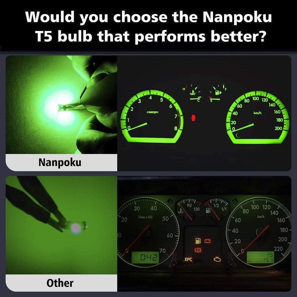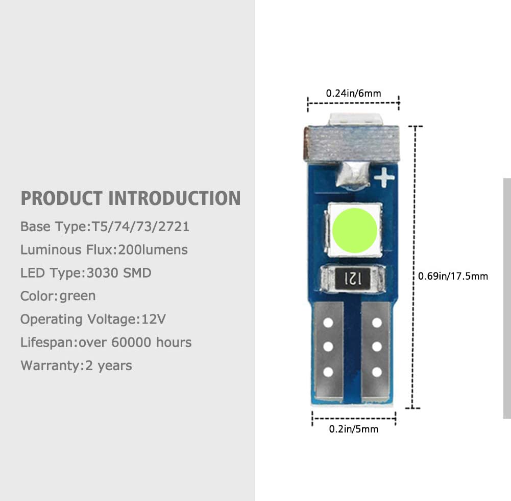 Nanpoku T5 Led Bulbs 74 73 37 2721 Led Bulb Canbus Error Free For Auto Car Dashboard Dash Instrument Panel Gauge Cluster Indicator Lights Lamp(Green)