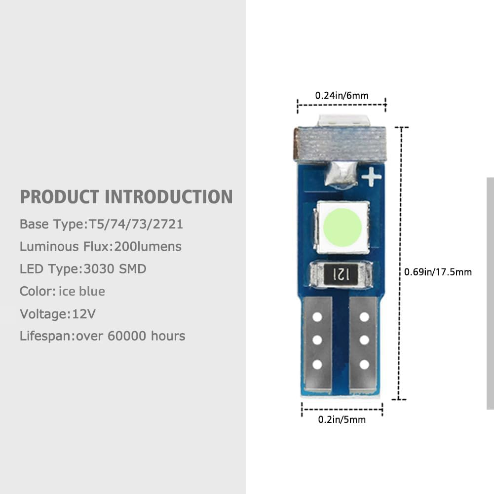 Nanpoku T5 LED Bulbs - Ice Blue, Error Free for Auto Dashboard, Gauge Cluster Indicator Lights, 74 73 37 2721 Model