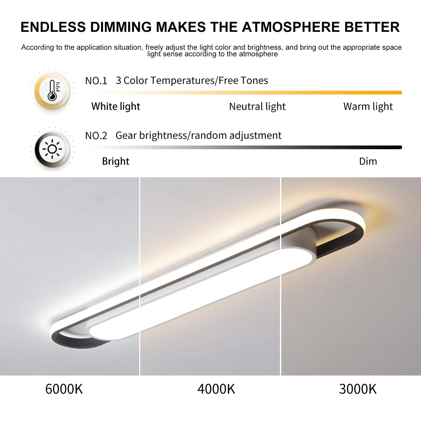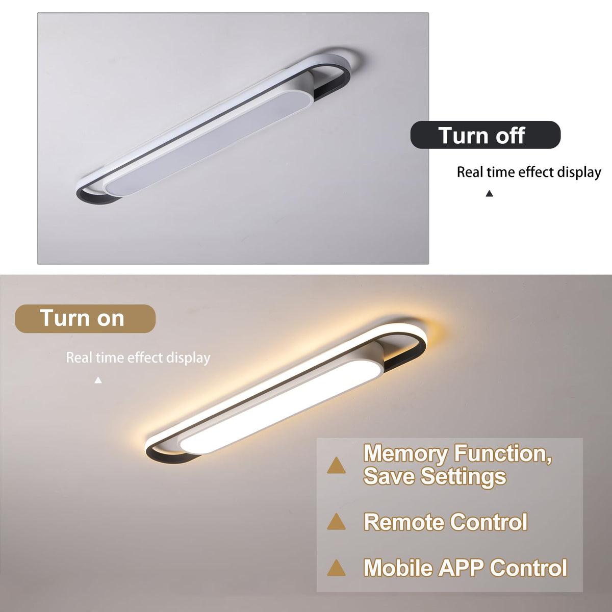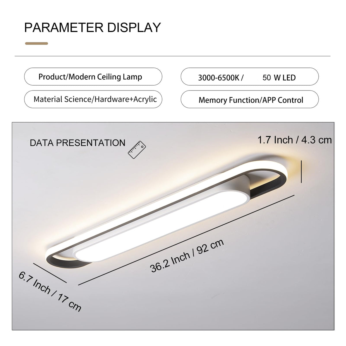 Naroume Dimmable Led Ceiling Light Modern Linear Led Ceiling Lamp 36.2'' Smart Semi Flush Mount Wraparound Shape Lighting Fixture With Remote Control For Kitchen Dining Room & Laundry (50W)