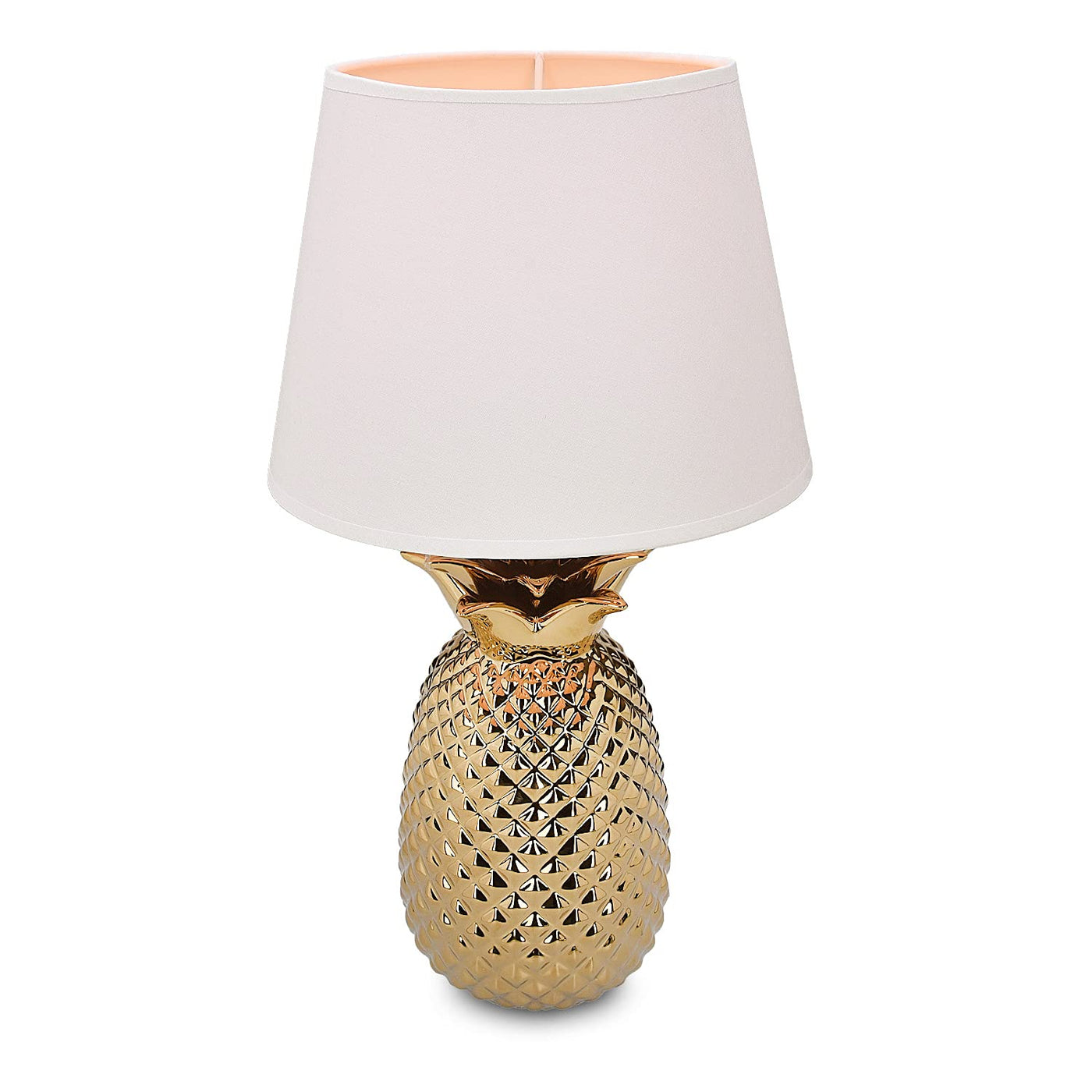 Navaris Gold Pineapple Table Lamp - Mini 13.8" Ceramic Base with E12 Socket - Metallic Gold & White Shade