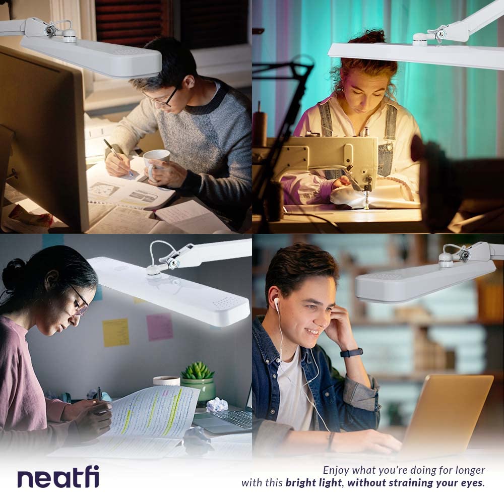 Q: Does the Neatfi XL LED Task Lamp have a stable base?A: Yes, this lamp comes with a weighted and durable base that ensures it remains securely in place on your desk, providing consistent lighting exactly where you need it.