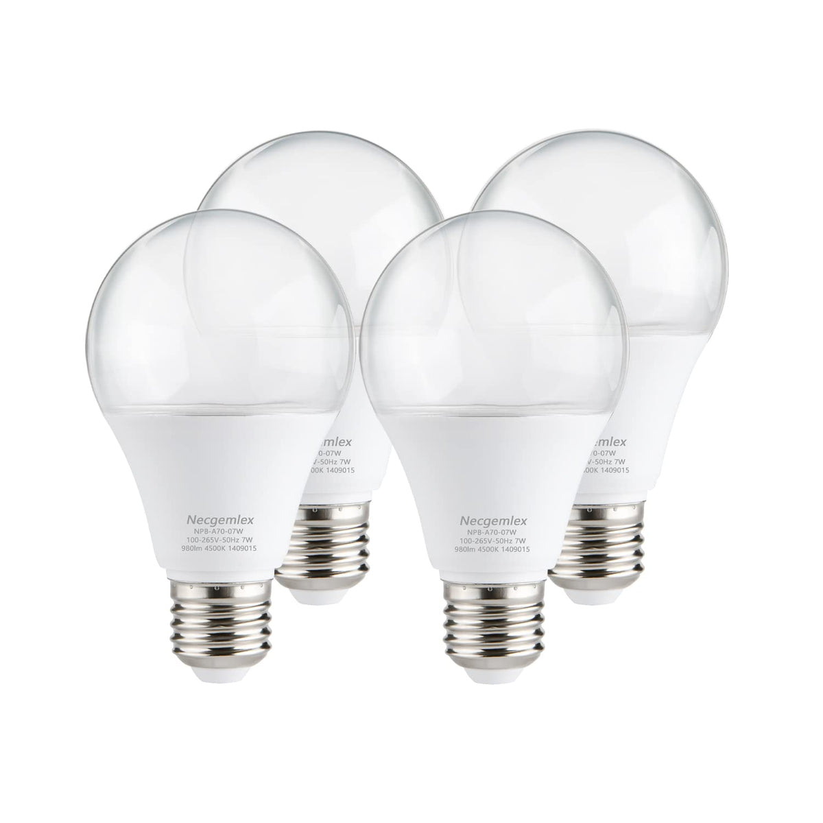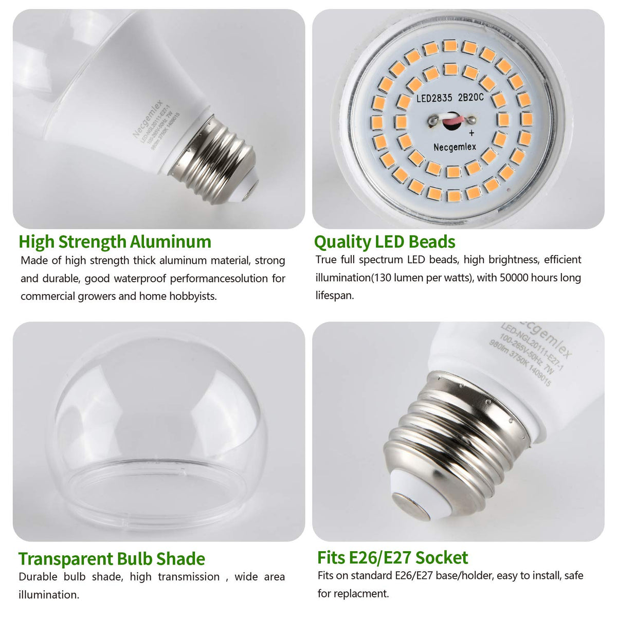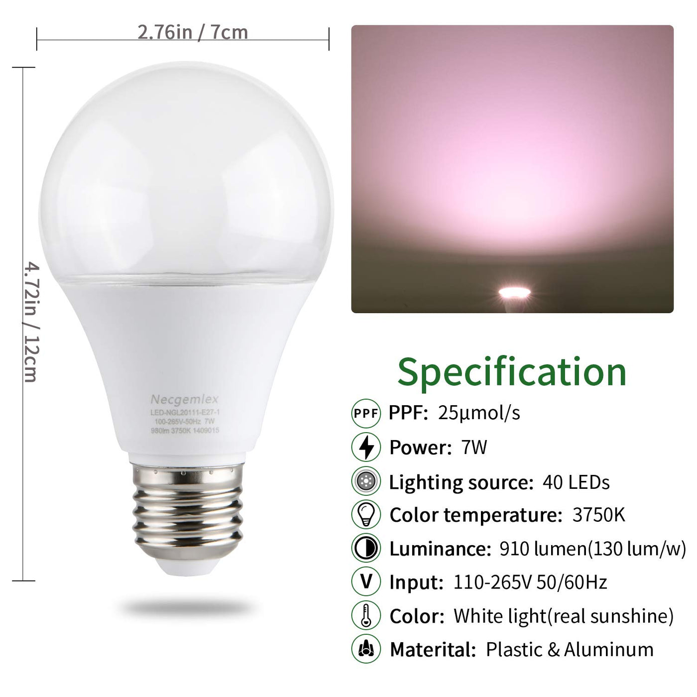 Necgemlex 4 Pack A70/A21 Grow Light Bulb, E26 110V 7W Full Spectrum LED Plant Light Bulb for Indoor Plants, Flowers, Greenhouse,