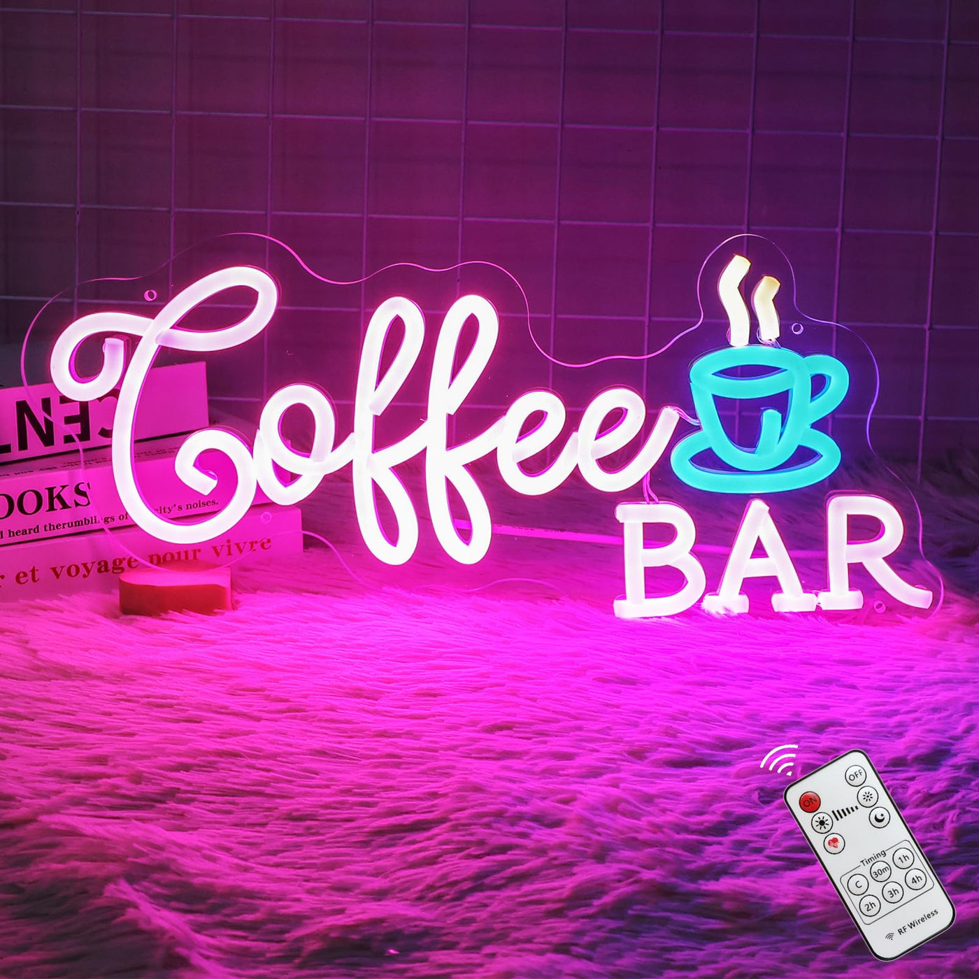 Neon Sign, Dimmable LED Coffee/Bar Sign with Remote, USB Powered for Coffee Bar/Cafe Decor
