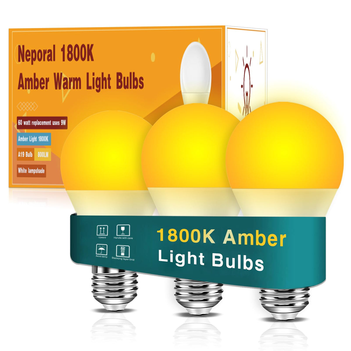 Neporal Amber Light Bulbs 9W, Soft Warm Sleep Light Bulbs 60W Equivalent, Blue Light Blocking Amber Night Light Bulbs 1800K, Bedtime Light Bulb For Healthy Sleep,1Pack