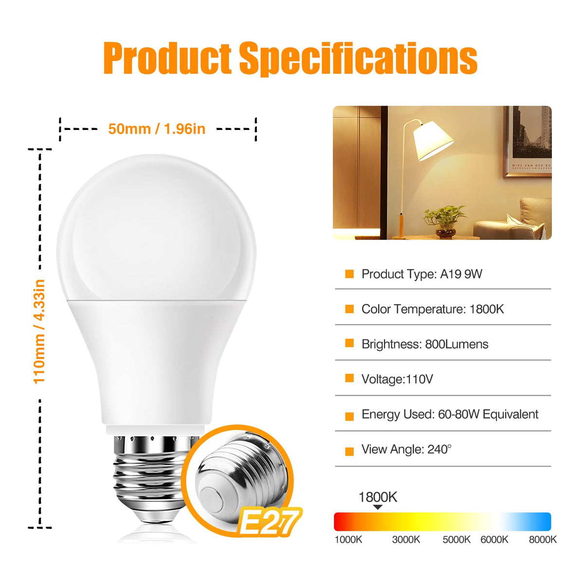 Q: How energy-efficient are Neporal Amber Light Bulbs?A: These bulbs use only 9 watts of power, which is significantly lower than traditional incandescent bulbs. Operating costs are around $1.02 per year when used for 3 hours a day, making them an economical choice for energy-conscious consumers.