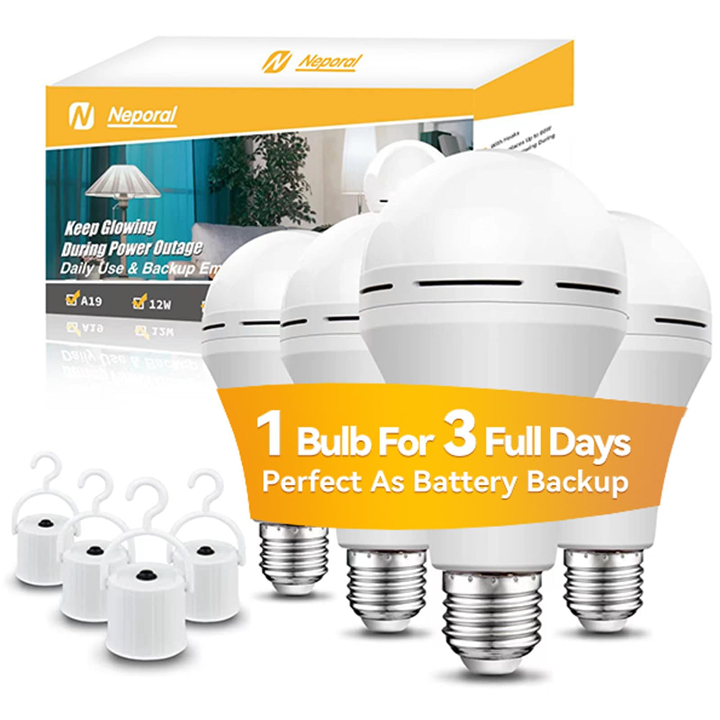 Neporal Lite Pro Rechargeable Light Bulbs, 2600Mah Large Battery Backup Light Bulbs, Perfect As Emergency Lights For Home Power