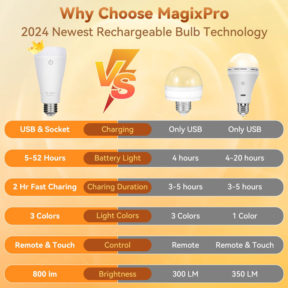 Neporal Magixpro Rechargeable Light Bulbs With Remote, Usb + Socket Rechargeable, 1800Mah Large Battery Light Bulb, 3 Color Shif