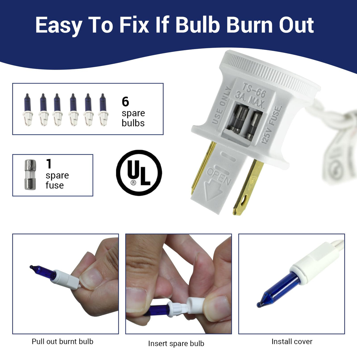 This 2 pack warm christmas icicle lights is with white wire. This 300 incandescent blue Christmas icicle light string is suitable for Christmas, anniversaries, wedding anniversaries and other holidays. It has a wide range of applications, not only for the decoration around the Christmas tree and eaves but also for the lighting of the venue environment, such as hanging on the tree, the gate, pillars and other places of decoration, to achieve the effect of lighting. It can be used indoors and outdoors. 17.67FT 300 incandescent per pack and it is connectable and able to connect up to 3 packs.
