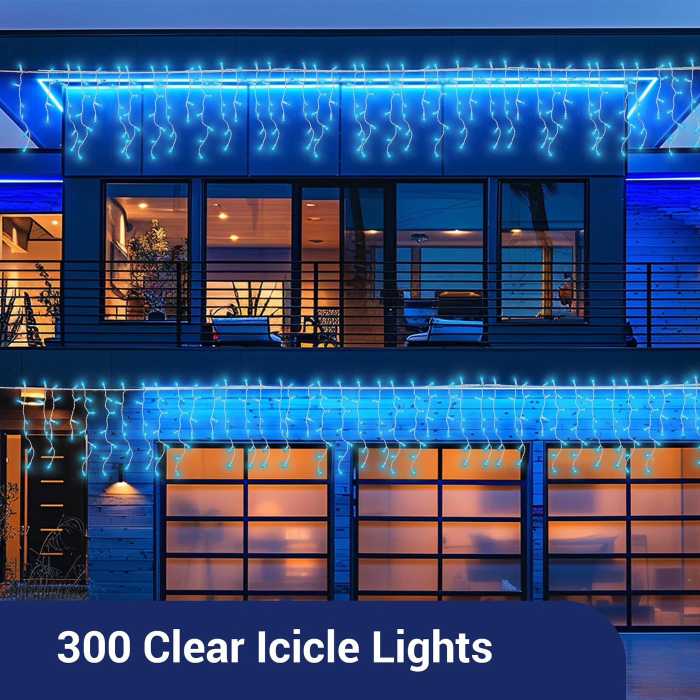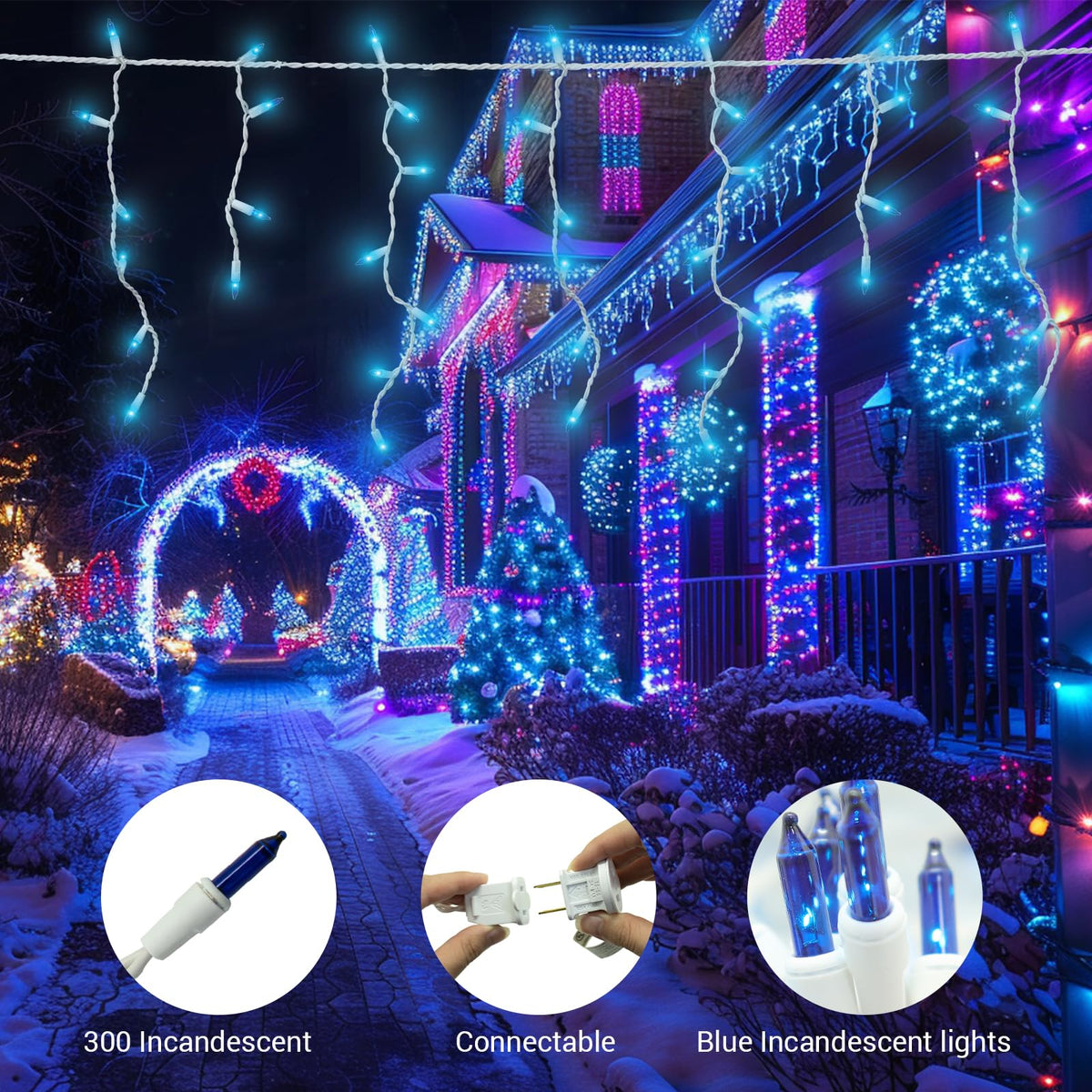 new one 2 Pack Icicle Lights, 17.67 FT 300 Incandescent Blue Icicle Christmas Lights with White Wire, 3 Connectable Icicle Strin