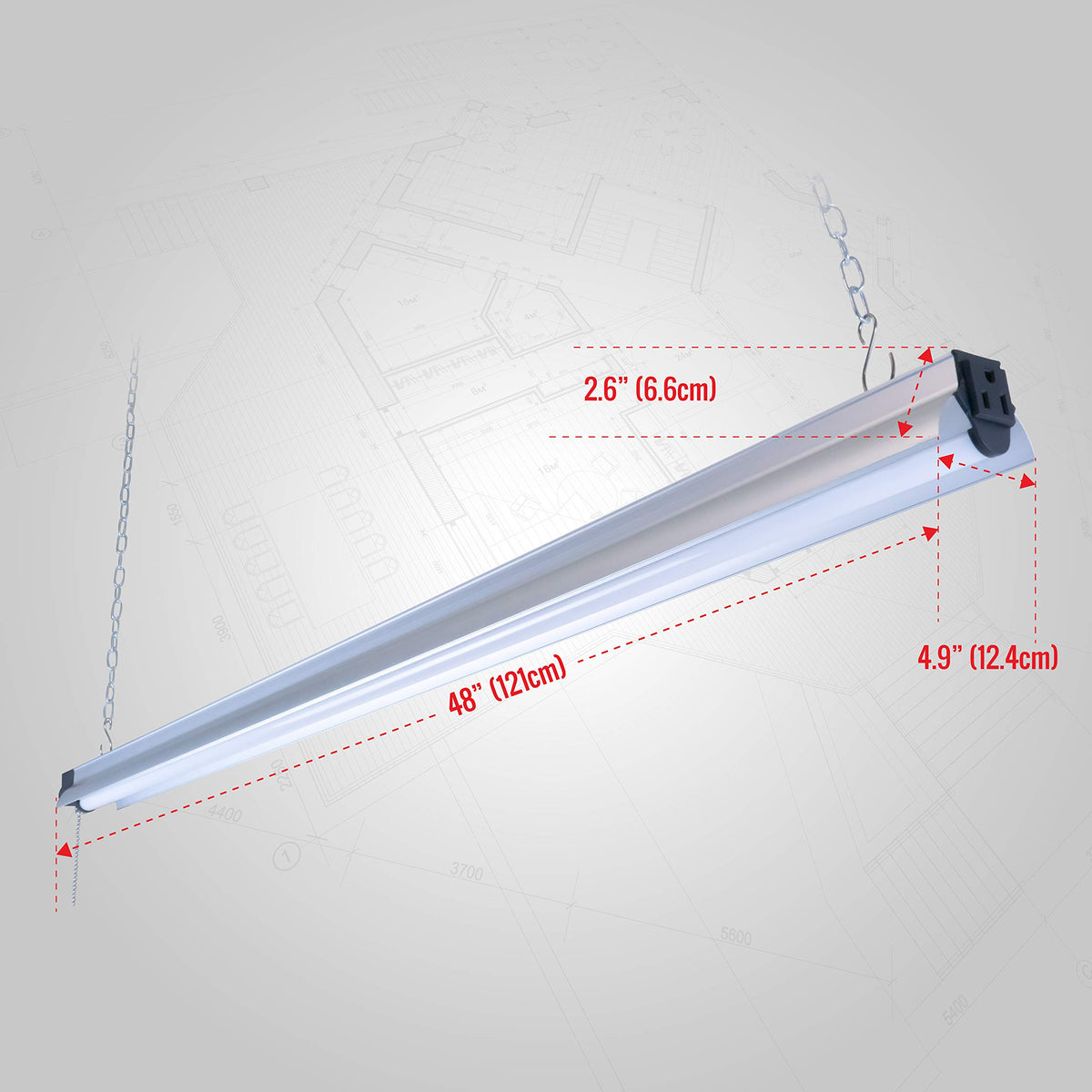 The Newhouse Lighting 48'' 5000 Lumen Linkable Led Shop Light Is The Perfect Work Lamp For Garages, Workshops, Offices, Basements, Storage Areas, Game And Recreation Rooms, And Utility Rooms. Each Fixture Provides 5000 Lumens Of Crisp Led Light, In A Pleasing 4000K Color Temperature. Link Up To 9 Fixtures Together By Simply Plugging Them In End-To-End. This Fixture Is Rated For 25,000 Hrs And Will Provide More Than 20 Years Of Service. As Always, Newhouse Lighting Provides The Best Warranty In The Industry And Covers This Fixture For 5 Years. Includes (1) 5' Power Cord, (2) S Hooks, And 2 Hanging Chains.