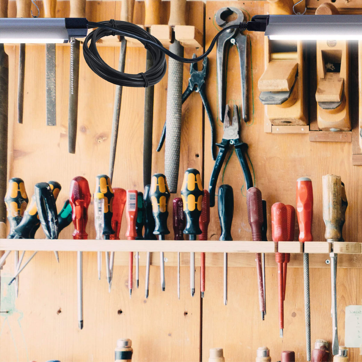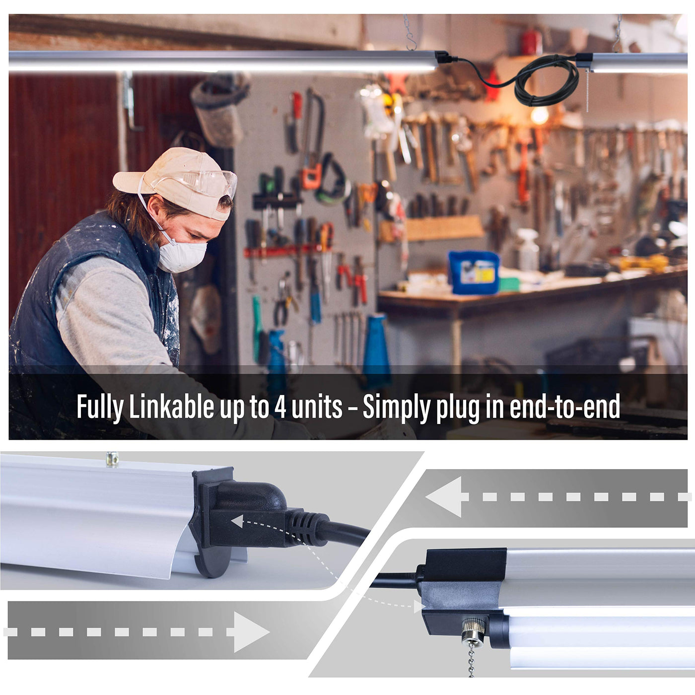 - **EASY INSTALLATION:** This 4-foot shop light comes with a hanging chain mounting kit and a 5ft power cord, making setup quick and straightforward. Link multiple lights together to cover larger areas effectively.