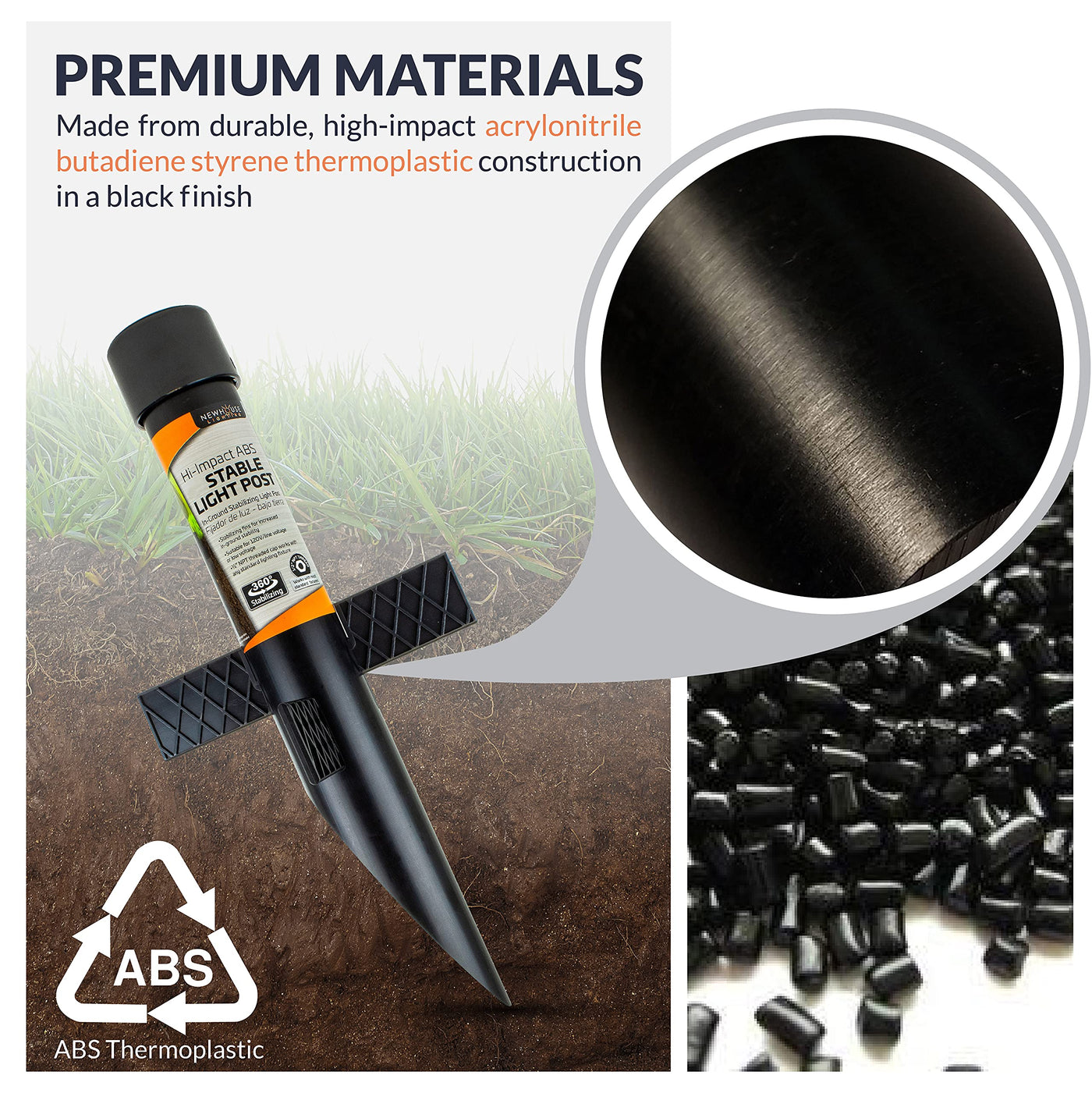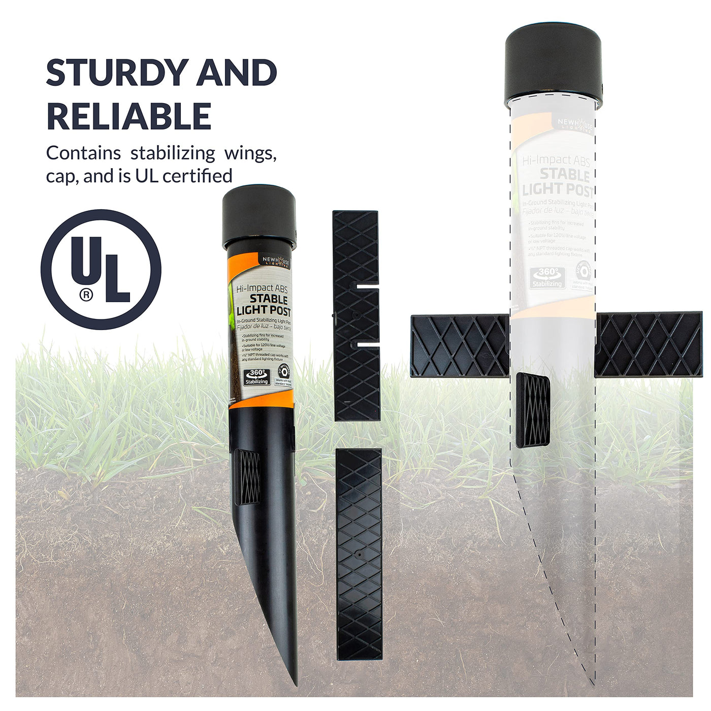Sturdy 17.63 in. ABS mounting post for ground mounted landscape lighting. Perfect for lawn lighting, sign lighting, or tree up lighting. Accepts 1/2 in. Npt threaded fixtures such as Newhouse Lighting LED flood lights, Par-38 and quartz floods. Post diameter is 2.5 in. In-ground stabilizing wings included.