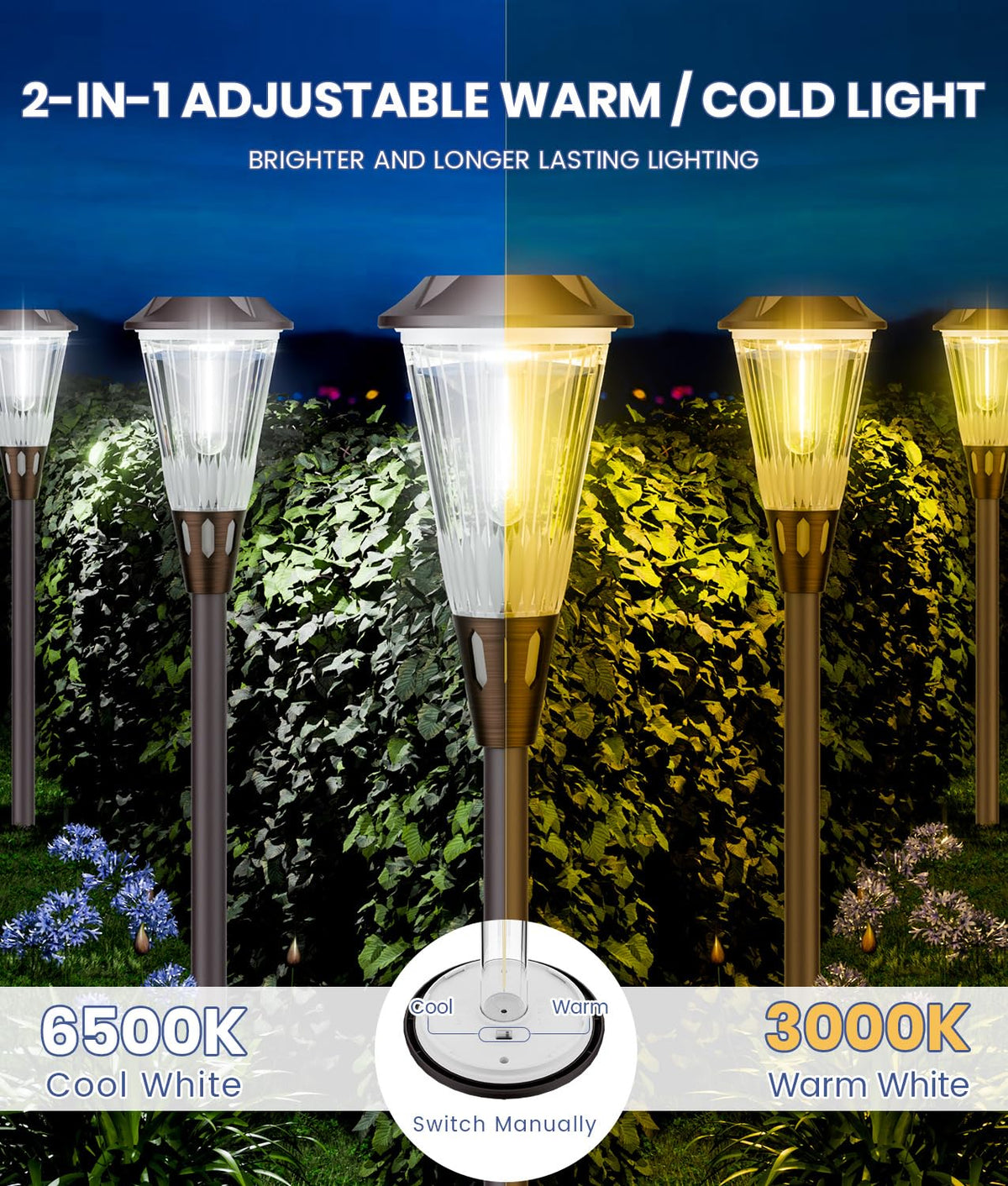 Newmessi Super Bright Solar Pathway Lights 2 Pack, 2-In-1 Warm&Cold Light 3000K/6500K Waterproof Ip65, Outdoor Solar Powered Lig