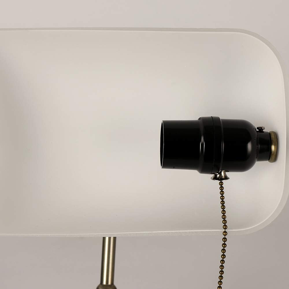 From the manufacturer 1.Antique white frosted glass bankers desk lamp with pull chain switch,you can easily adjust the angle to suit your lighting needs. 2.You can install anywhere in your home.It gave off a soft and bright flash that lit up every corner.Light up any part of your home:Suitable for use on a desk at home or at work. Product information 1.We use good components.Electric wire, lamp holder, etc 2.Bankers desk lamp made of glass and metal add durability to decorating your space and lighting your home. This traditional interior lamp adds a natural touch to your decor.Installation instructionsInstall the lamp according to the instruction sheet.The lamp can be installed quickly and easily, and it includes all installed hardware.Notes 1. Lamp complete assembly needs time and energy. 2. When installation, please switch off the electricity. 3. Not include bulb, you can use the energy-saving light bulbs or LED bulbs.Specification Style:Traditional and Antique Base type :1* E26(excluding bulb)
