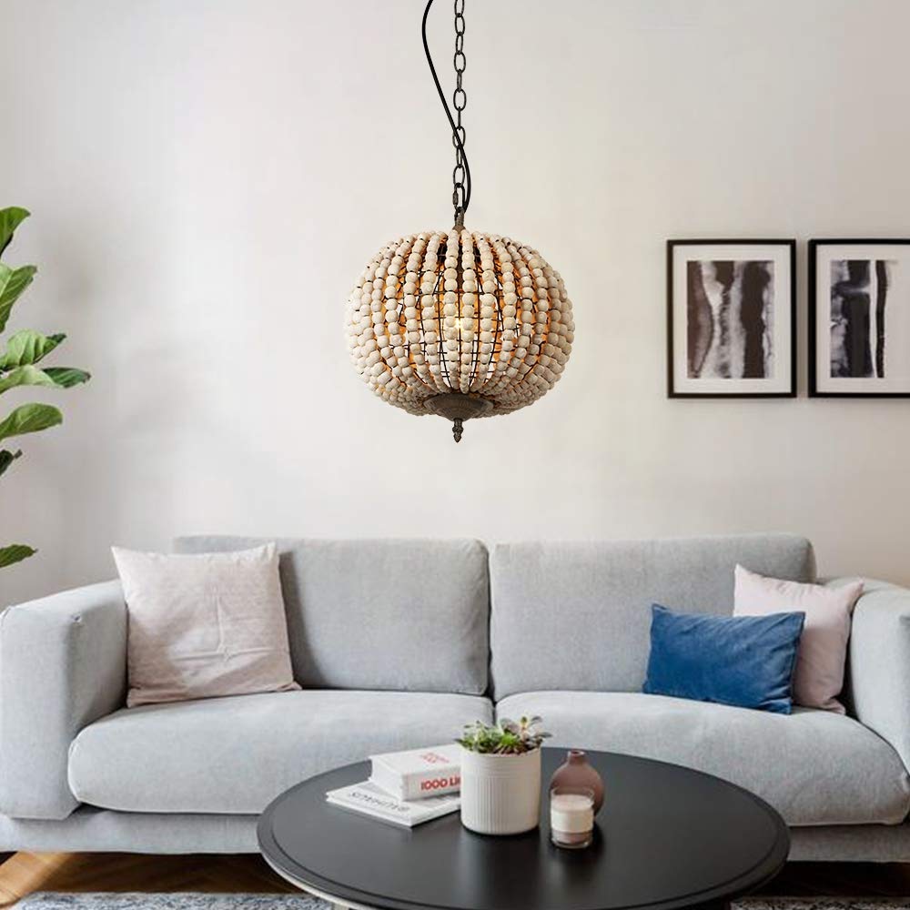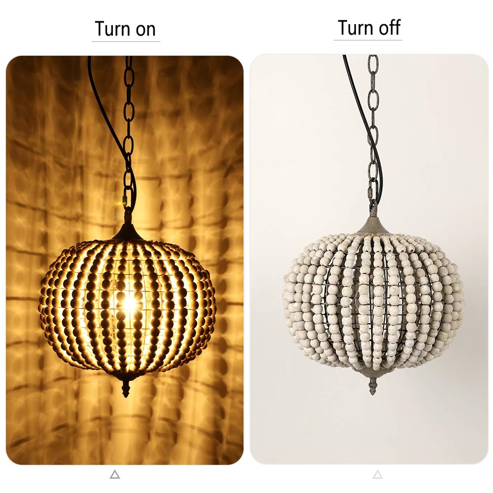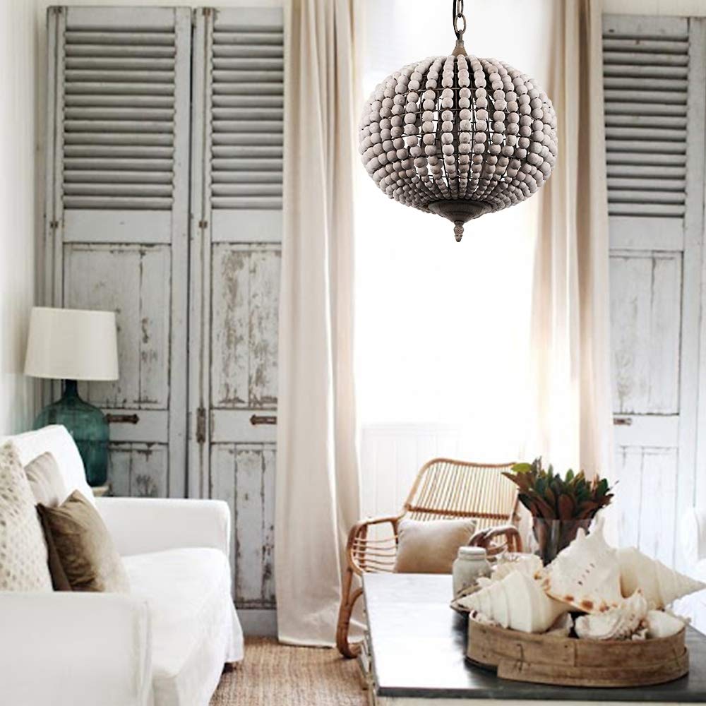 Note:Bohemian Boho Beachy Wood Bead Chandelier Pendant Ceiling Lamp Light Fixtures.Mini Size,Looks Chic And Absolutely Stunning! We Have Improved The Packing,We Already Strung The Beads Together, And Hanging It On The Lamp, It Is Easy To Assembled It When You Received The Package . Newrays Antique Style White Washed Shabby Chic Circular Wooden Beaded Chandelier Kitchen Island Pendant Lights, 13.8 Inches Round By 16.5 Inches Height, Adjustable Chain, Suit For Island Lights