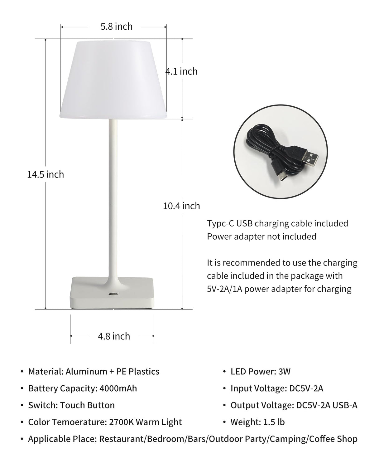 Newsee Led Cordless Touch Switch Table Lamp. Switch On And Off With The Push Of A Button. The Desk Lamp Is Portable And Battery Operated So It Can Be Recharged During A Power Outage And Can Be Recharged Using A Usb Charging Device. Used For Reading, Shower Lamp, Waterproof Lamp, Bedside Work, Study, Living Room, Kitchen, Children'S Room, Etc., Create A Romantic Lighting Atmosphere In Every Space, Home Decor.