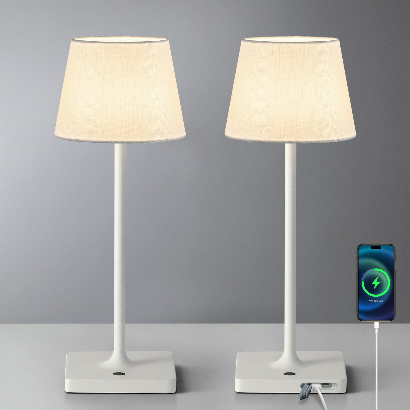 NEWSEE Cordless Portable Touch Table Lamp Set of 2, 4000mAh Rechargeable Battery Powered Dimmable LED Desk Lamps Fabric Lampshde