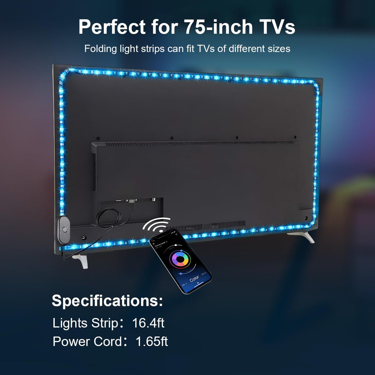 Nexillumi Led Lights For Tv, 16.4 Ft Tv Led Backlight For 55-75 Inch, Rgb Led Strip Lights Behind Tv With App Remote Control, Mu